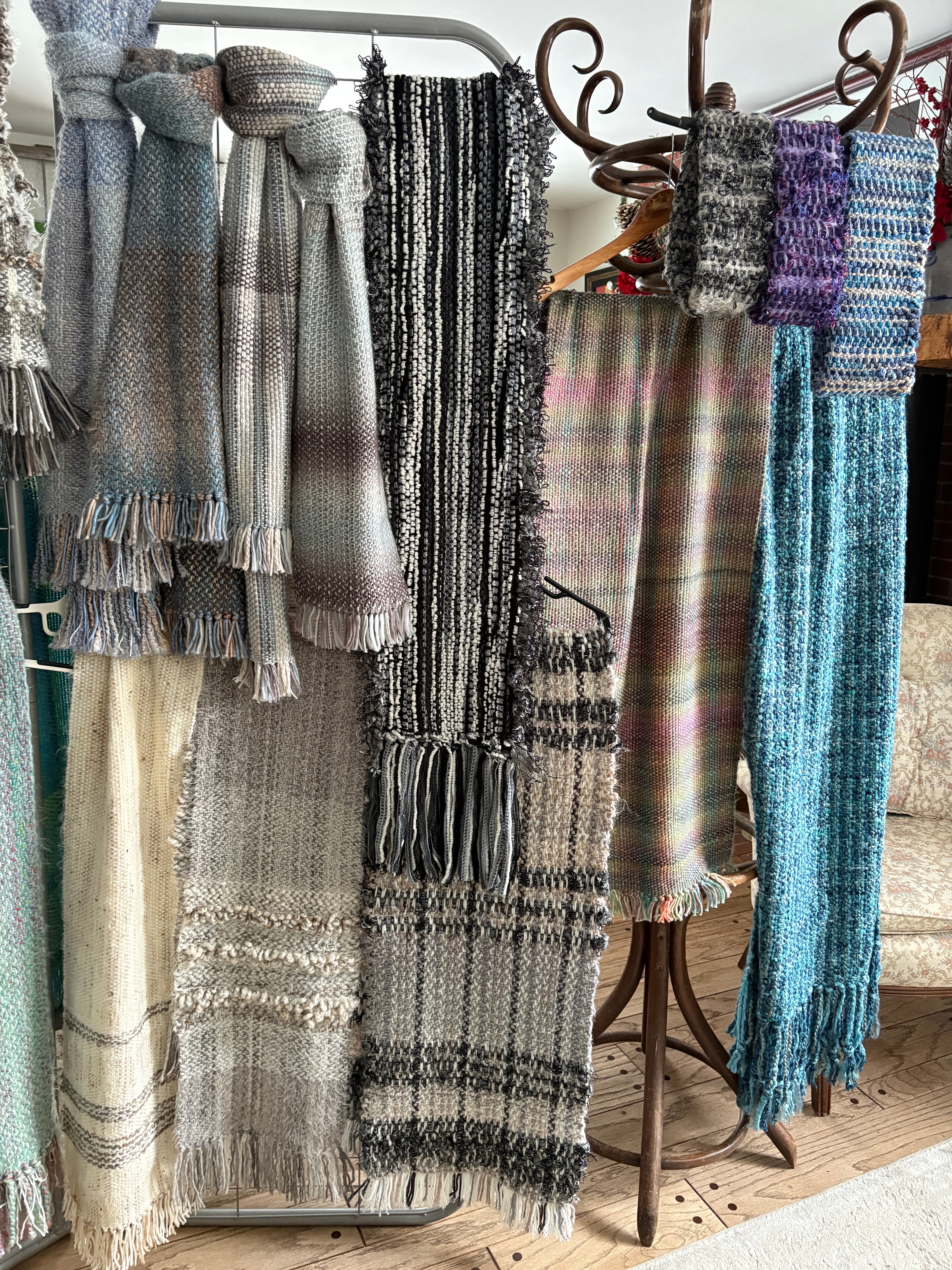 Handwoven fashion accessories are woven on my 45" floor loom and are one of a kind items that are functional and beautiful accents to enhance your wardrobe. Custom orders available upon request. Just send me a message with type of product and colours that you are looking for and I will happily get back to you.