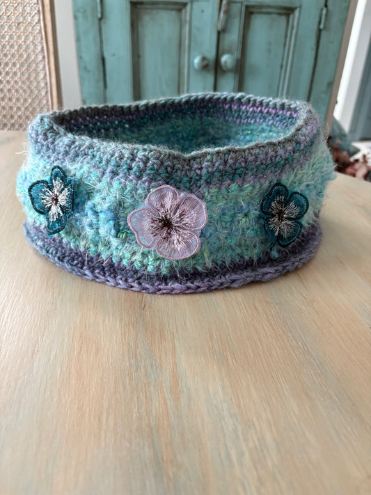 Hand-crocheted Cowl Neck Warmer with embroidered floral embellishment