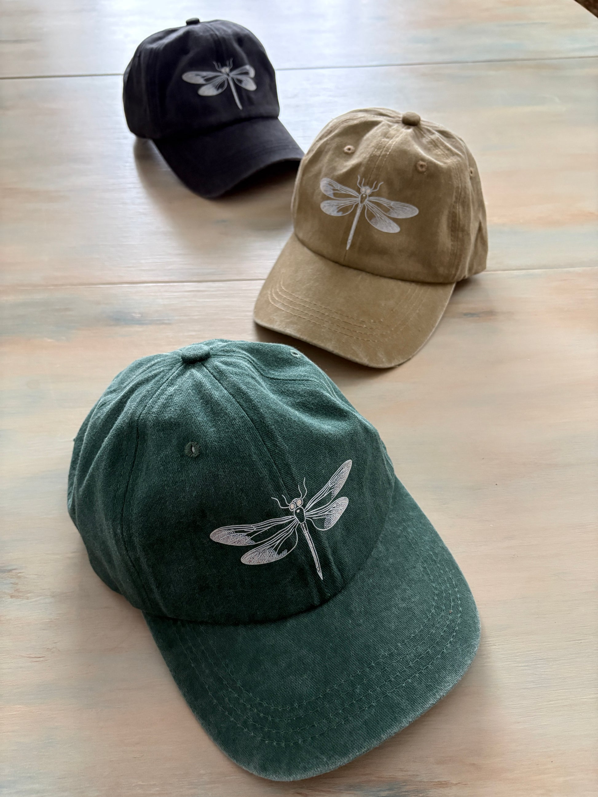 This baseball style brushed cotton cap has a beautiful silkscreened Dragonfly imprint above the 2.95" brim.